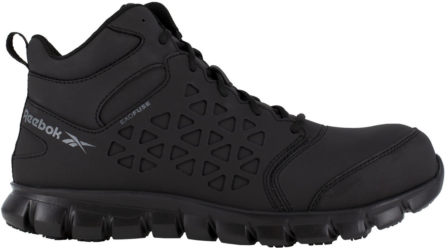 Work comfortably wearing the Reebok Men's Sublite Mid Leather CT Work Boots. The EXOFUSE uppers deliver lightweight flexibility with a water-resistant microfiber design for dry wear, and the MemoryTech Massage 2.0 memory foam insoles with removable cushion footbeds provide soft landings with every step. The XTR® composite toes protect your feet against hard contact.