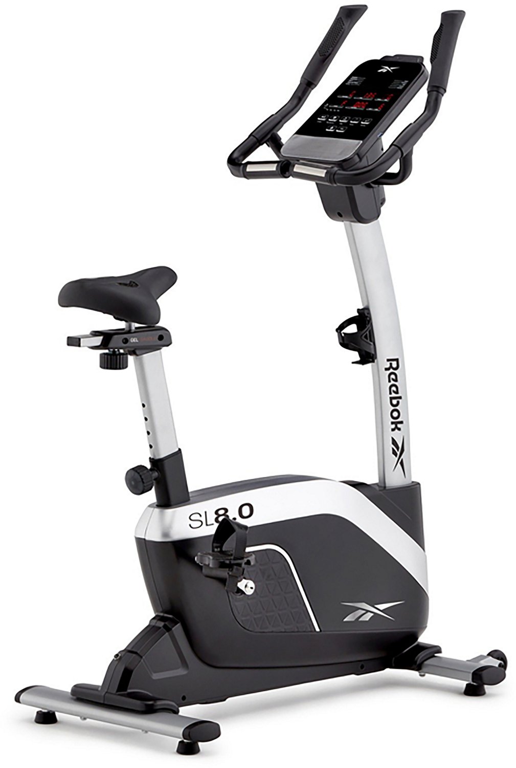 Bolster your home fitness equipment collection with the Reebok SL8.0 Exercise Bike. You can view various pieces of data during a workout with the LED console, and the phone/tablet holder lets you listen to music or watch a program while you exercise. The bike's 24 resistance levels challenge your strength and endurance, and the densely padded saddle with vertical and horizontal adjustment provides a comfortable sitting area.