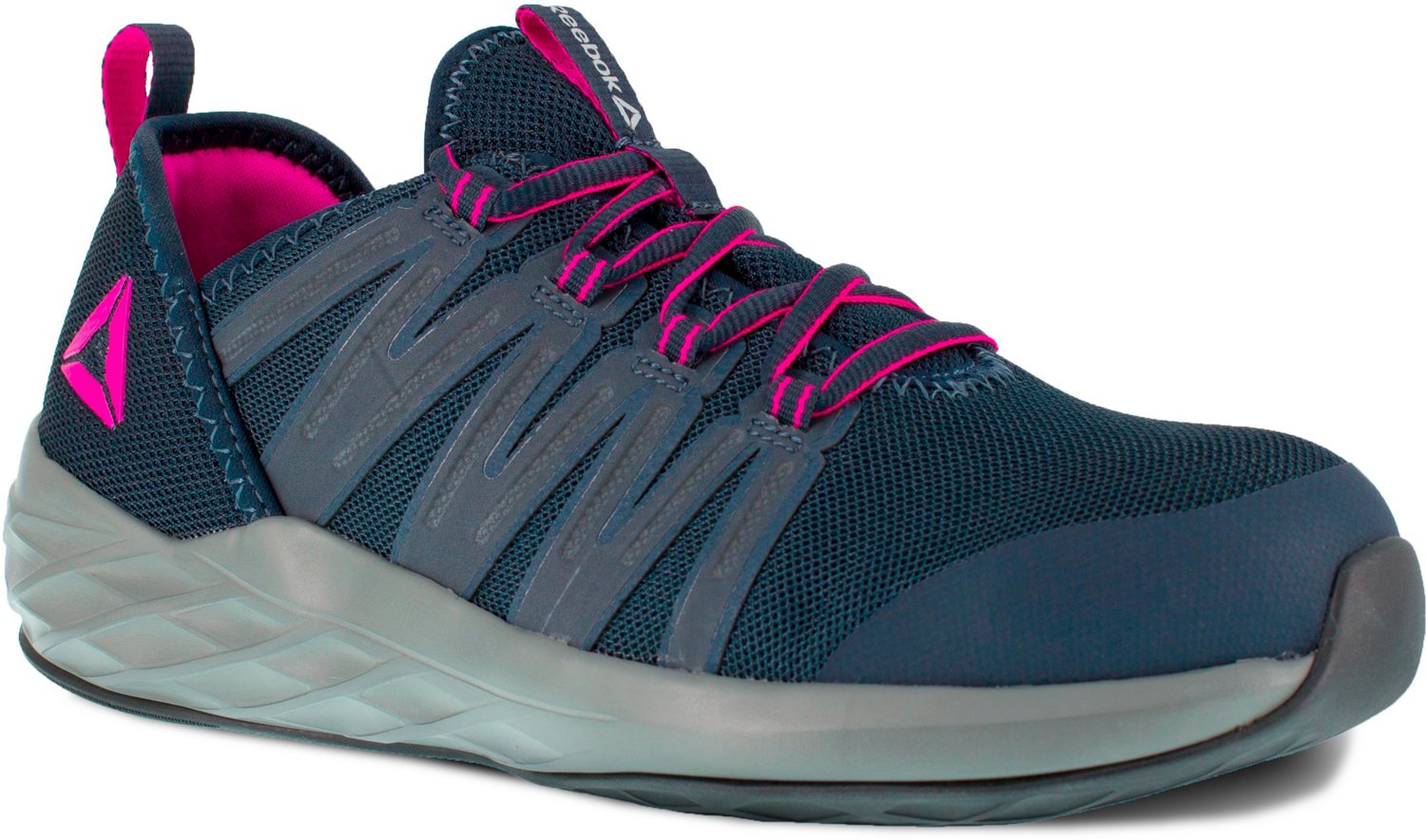 Keep yourself protected on the worksite by wearing the Reebok Women's Athletic Astroride Work Shoes. Crafted with dual-layer stretch mesh uppers, these shoes remain breathable, while the MemoryTech Massage removable footbeds offer a cushioned ride. The slip-resistant rubber outsoles deliver grip across most surfaces, and the ultrafine nylon fabric liners wick away sweat for a dry feel.