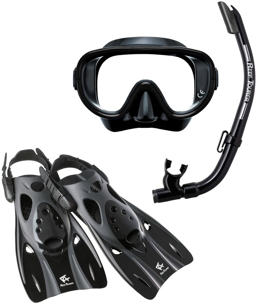 ReefTourer Adults' Single-Window Mask, Snorkel and Fin Traveling Set