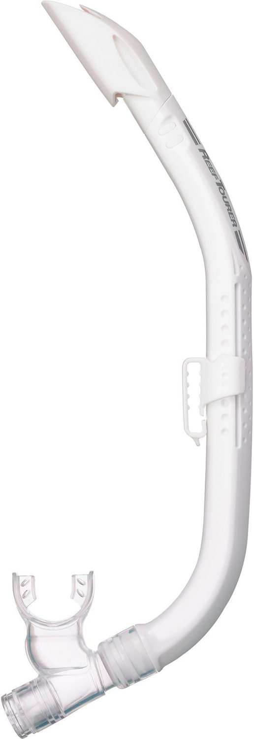 Use the ReefTourer Semi-Dry Snorkel to help keep water out of your mouth while you snorkel. The snorkel is designed with a silicone mouthpiece for comfort and features hyperdry technology to make sure you have a fun time. A drain chamber and a purge valve permit quick and easy clearing.