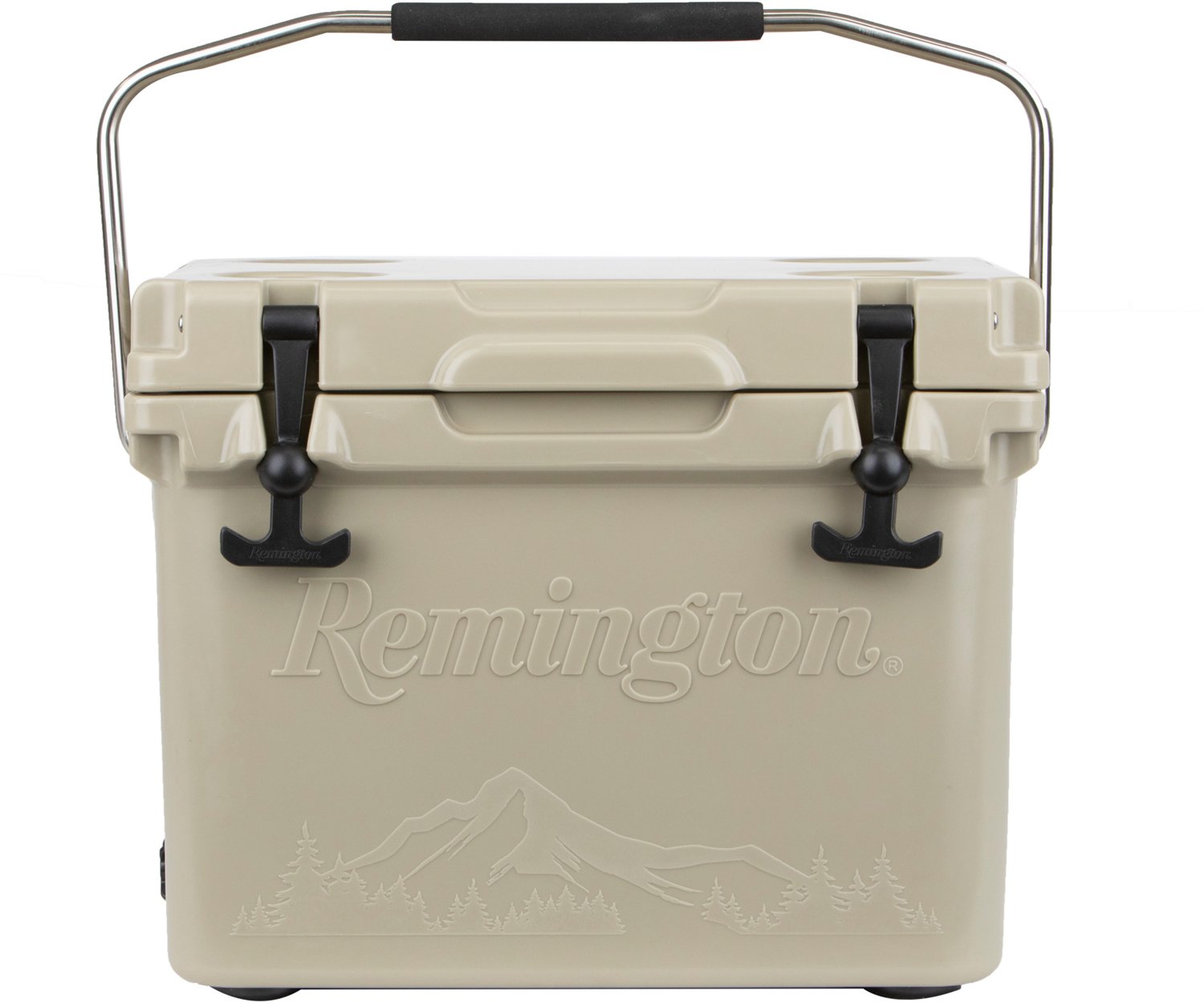 Hit the road with the Remington 25 qt Rotomolded Cooler. The double-walled rotomolded construction affords durability, while the rubber lid hatches keep contents secure. The cooler retains ice for up to 4 days to ensure contents remain cold, and the anti-slide foot pads help prevent spillage.