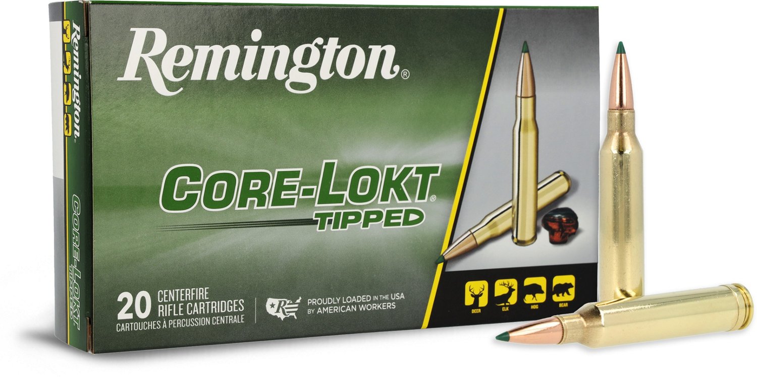 Hunt for big game with the Remington Core-Lokt Tipped 7mm Remington Magnum Rifle Ammuntion - 20 Rounds. The big green polymer tip offers improved long range ballistics, in-flight accuracy and helps initiate rapid expansion, while the Core-Lokt jacket enhances performance.