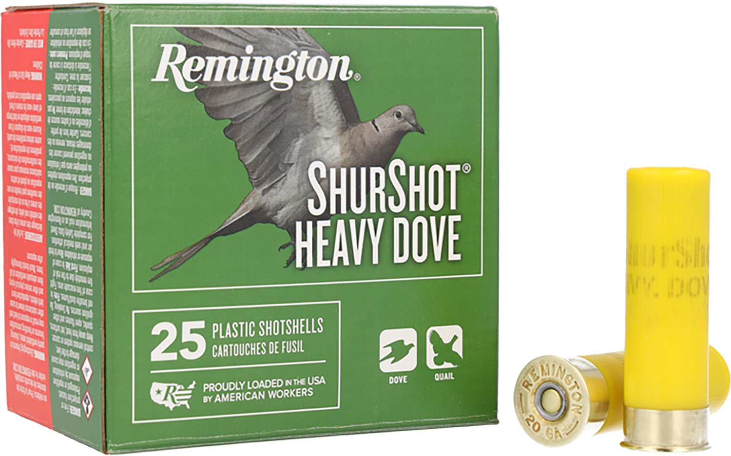 Load up with the Remington ShurShot Heavy Dove 20 Gauge 7.5 Shotshells - 25 Rounds. It has excellent balance and patterns. The mild recoil works for high-volume hunting, and it is best for upland game. It comes in a 25-round box.