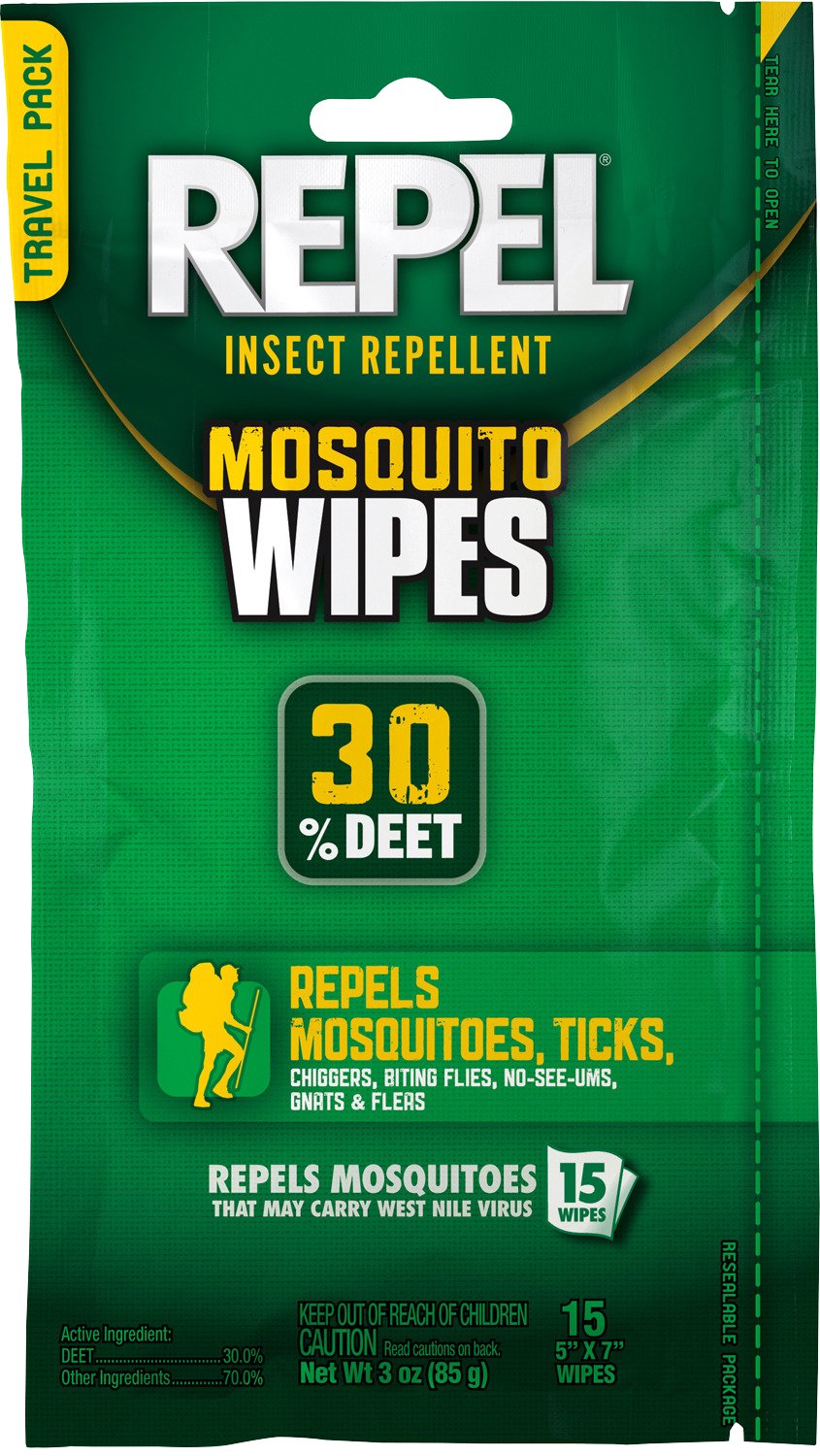Ideal for backpackers, hunters, fisherman and other active outdoor enthusiasts, the Repel Sportsman Formula Insect Repellent Wipes 15-Pack features a 30% DEET formula designed to protect against mosquitoes, ticks, chiggers and biting flies. The flexible pouch allows controlled application.
