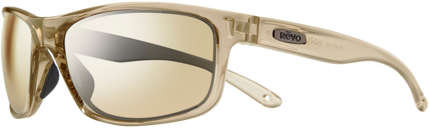 Wear the Revo Harness Sunglasses to protect your eyes from the sun. Featuring lightweight and durable frame materials, these sunglasses come with a versatile, subtle wrap design to eliminate glare. The sunglasses also include polarized lenses with NASA technology and a mirror coating for sun protection.