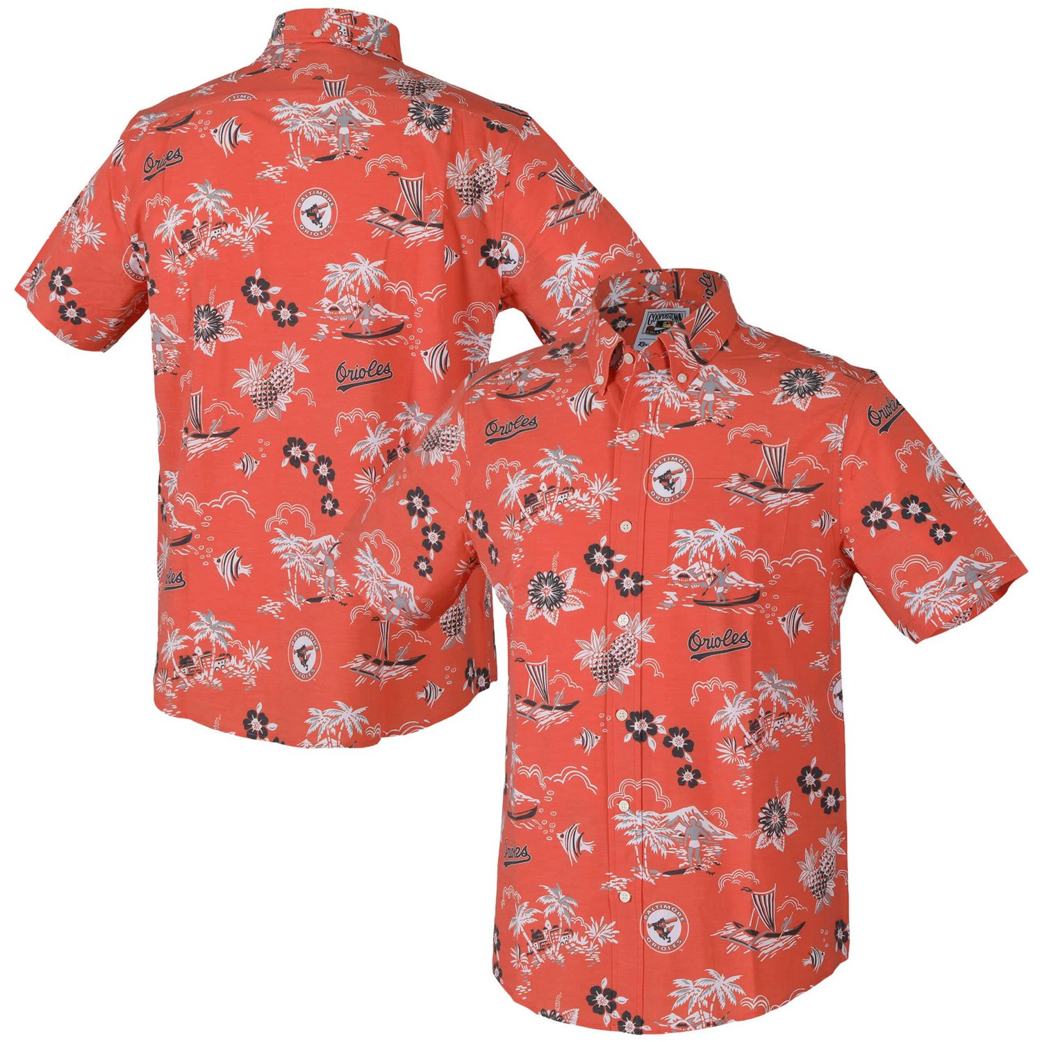 This Kekai button-down shirt by Reyn Spooner has you looking great from the ballpark to the boardroom It features a chest pocket to hold a small item or two breathable four-way stretch fabric and moisture-wicking technology An allover pattern featuring the Baltimore Orioles logo and an island print makes repping your team easy