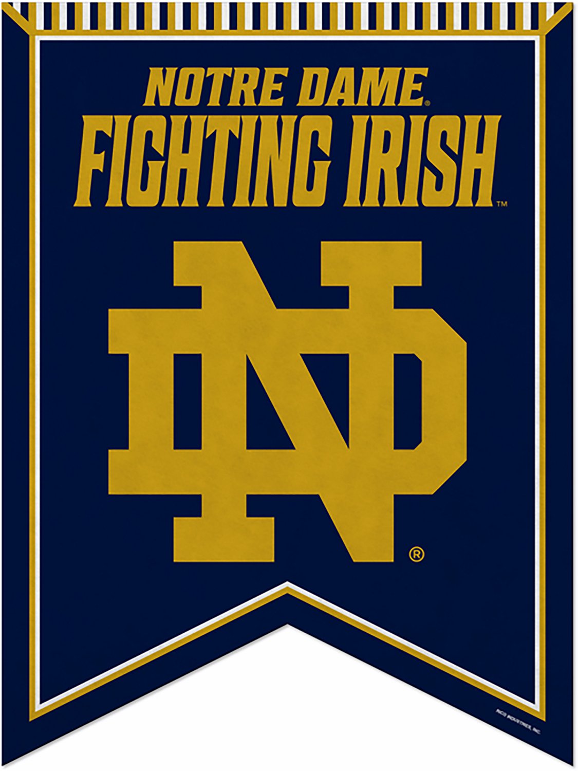 Showcase your love of college sports, Notre Dame and the iconic Fighting Irish by displaying this Rico Notre Dame Fighting Irish Rafter Pennant among your memorabilia. Its felt construction makes installing it easy, and its 18 in. x 24 in. size is sure to get it the attention it deserves.