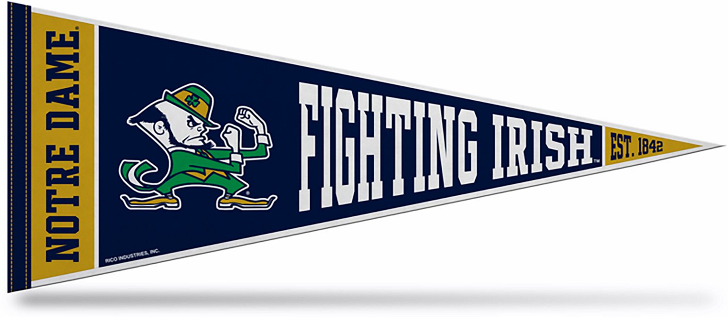 Showcase your love of Notre Dame and the iconic Fighting Irish by displaying this Rico Notre Dame Fighting Irish Rally Design Pennant among your college sports memorabilia. Its soft felt construction makes installing it easy, and its 12 in. x 30 in. size is sure to get it well-deserved attention.