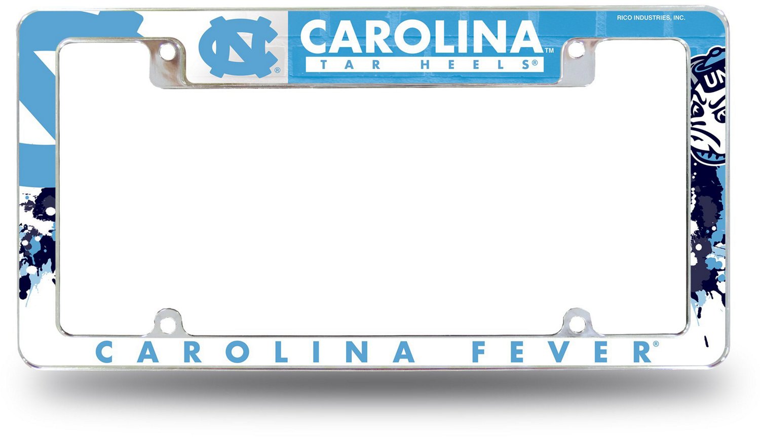 Hit the road with the Rico University of North Carolina Allover Chrome Frame. The chrome finish provides a unique look, while the allover print displays your Tar Heels pride.
