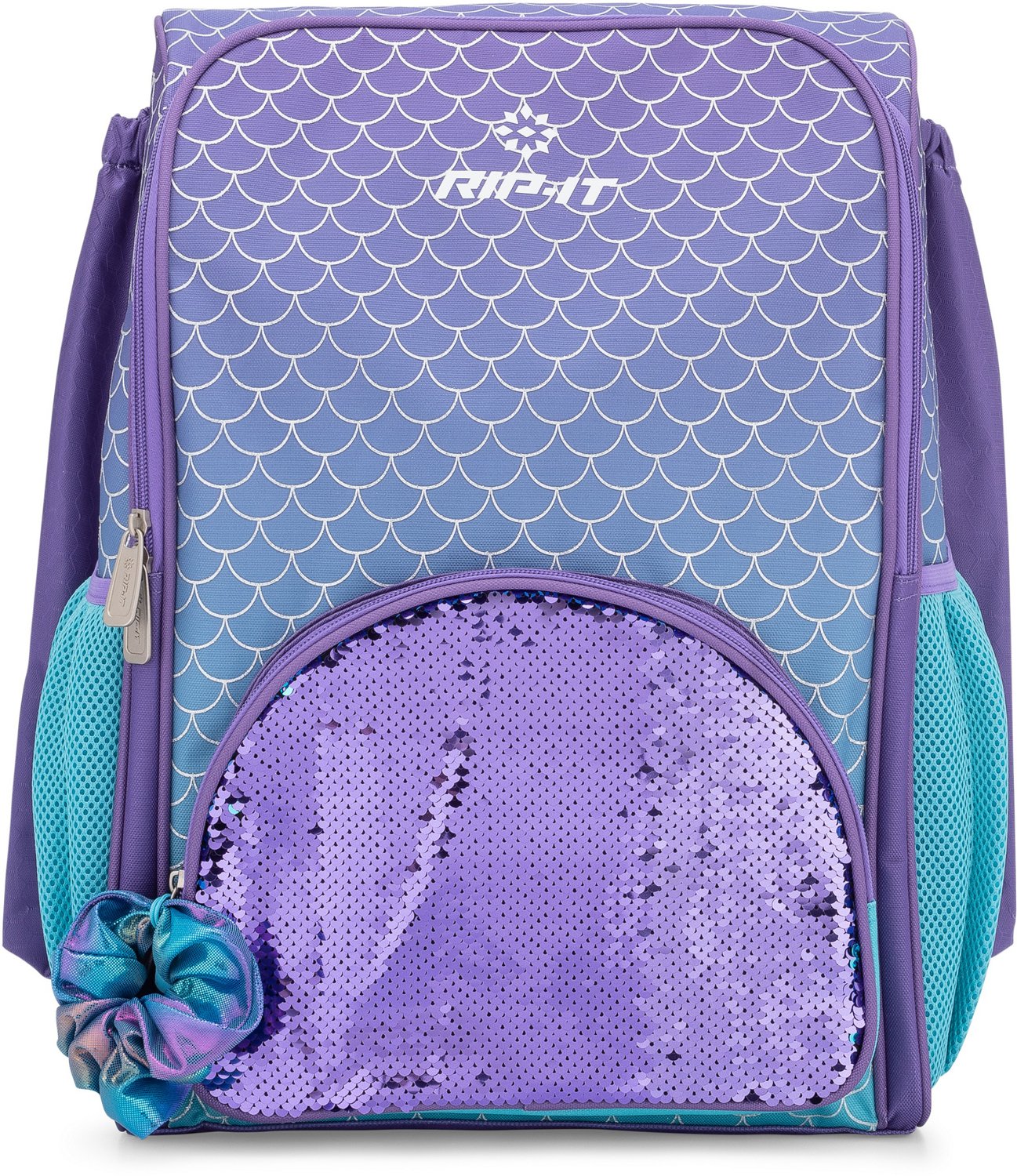 Be ready for softball practice with the RIP-IT Girls' Play Ball Softball Backpack. This durable softball backpack is large enough to store all your gear and has elastic-cinched side sleeves to hold your softball and water bottle. The adjustable, padded shoulder straps allow for comfortable wear, while the ombre mermaid print with flip-sequins adds a fun look.