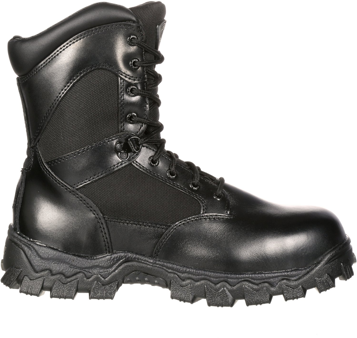 Great for wear in even the toughest of conditions, the Rocky Men's AlphaForce SR Zipper Waterproof Duty Tactical Boots feature sturdy full-grain leather uppers and oil- and slip-resistant RigiTrac outsoles. Fully waterproof construction helps keep your feet dry, and shock-absorbing Air-Port® footbeds offer comfort with every step.
