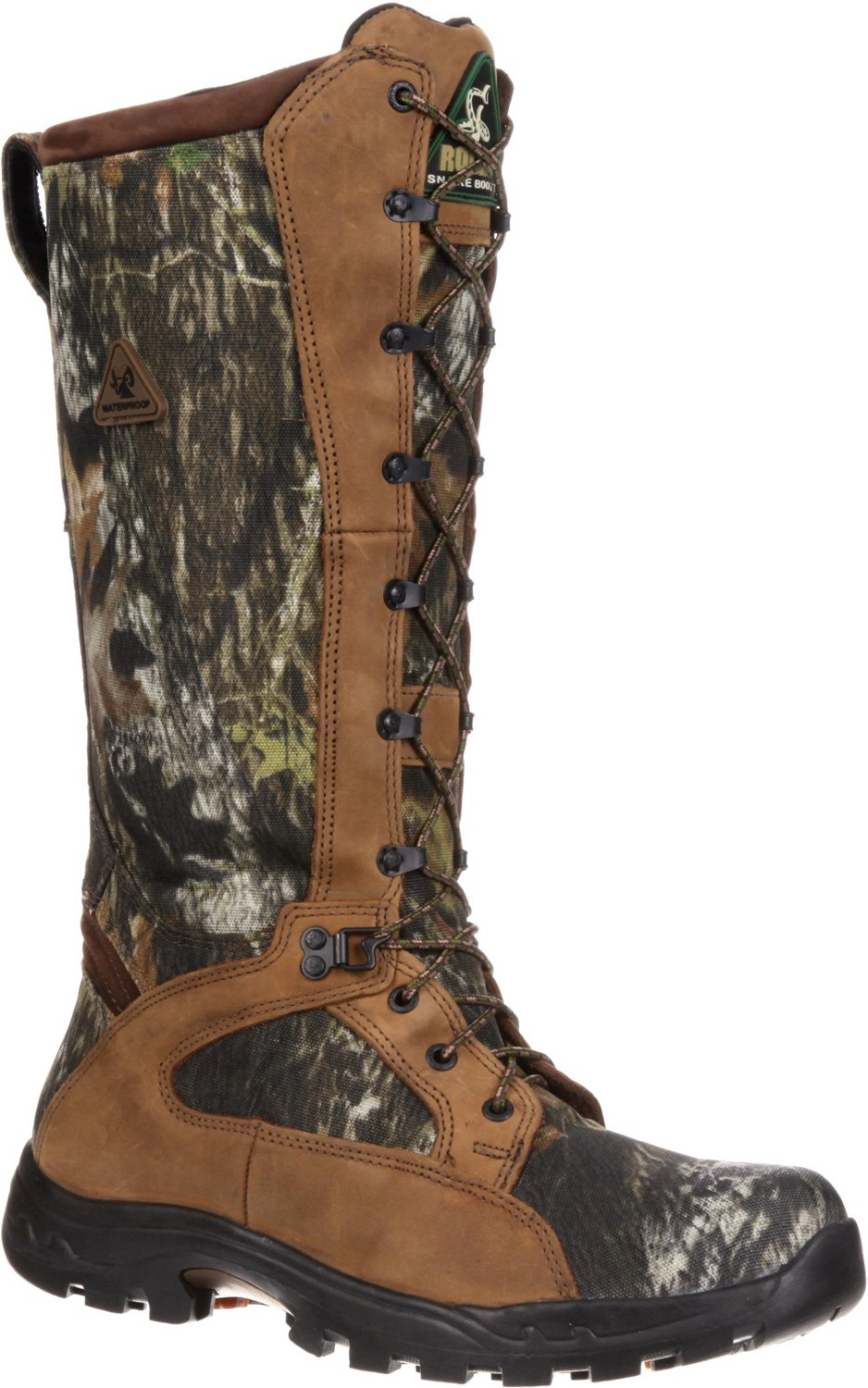 Stay safe against unexpected wildlife encounters wearing these Rocky Men's ProLight Waterproof Snake Protection Hunting Boots, which help shield against most North American snakes, including rattlesnakes, copperheads and coral snakes. The BioMech outsoles are made of sturdy polyurethane and rubber for sure footing on most surfaces, and the waterproof nylon uppers have full-grain leather trim for a stylish accent.