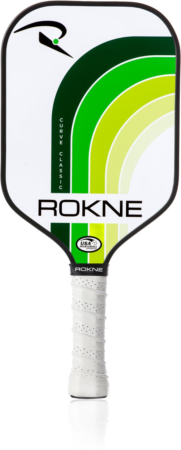 Bring some grit to your game with the Rokne Curve Classic Pickleball Paddle. This classic-style paddle features a textured fiberglass surface and a honeycomb core for balance and power. Designed to increase spin, this paddle reduces fatigue and absorbs vibrations for a consistent feel. A 4.25-inch cushioned grip keeps you in control and lets you play for hours.