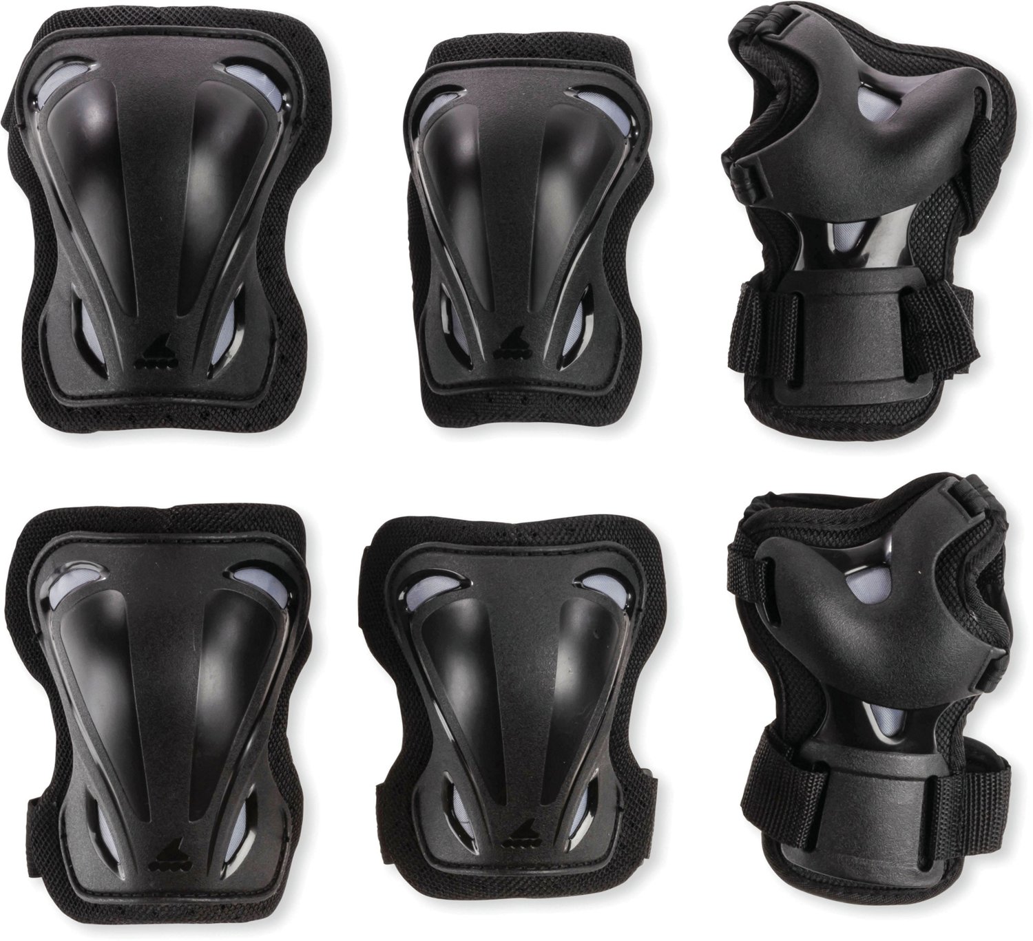 Protect yourself while having fun with the Rollerblade Adults' Skate Gear Set. Constructed with durable materials, these knees pads, elbow pads and wrist guards feature an anatomical left/right design with protective caps to keep you safe. The easy-strap closure system provides a secure fit, while the mesh lining promotes breathability.