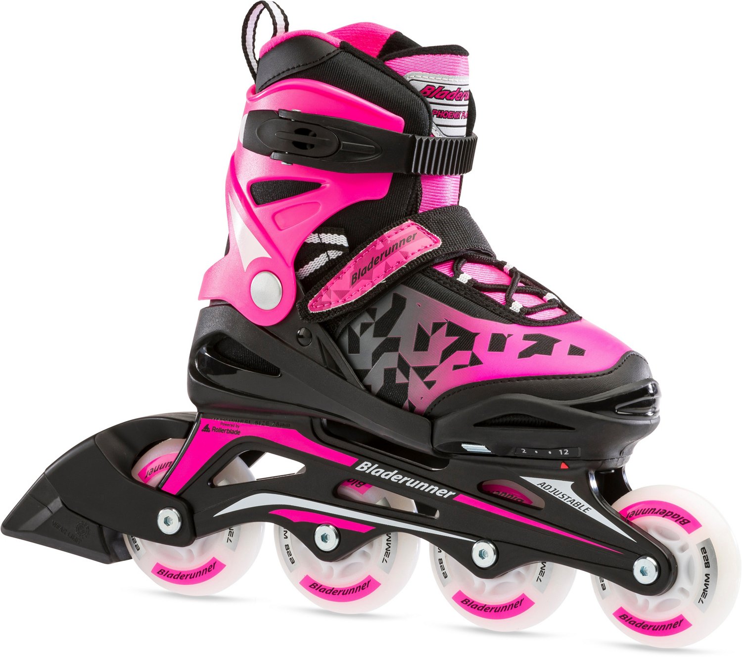 Add fun to your outdoor adventures when you roll on the Rollerblade Girls' Phoenix Flash 12J-2 Adjustable LED In-Line Skates. The monocoque composite frames are sleek and lightweight for lateral support, while the locking cuff buckles, 45 degree straps and lace-up closures help ensure a secure fit and easy on and off. The LED illuminated wheels encourage visibility in low light conditions and work alongside the ABEC 3 wheel bearings to offer speed, stability and control.