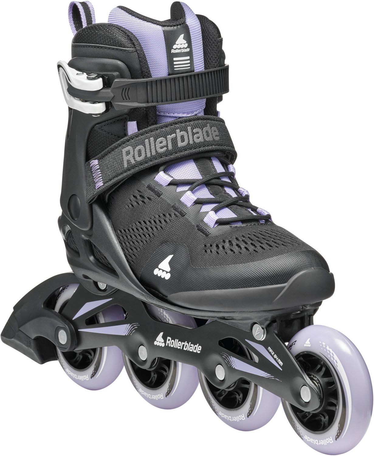 Skate in style with the Rollerblade Women's Macroblade 84 Inline Skates. The twinblade aluminum frames afford durability as well as balance and stability, while the breathable performance liners provide comfort. The buckles, power straps and lace closures keep your feet secure, and the SG7 bearings help control your speed.
