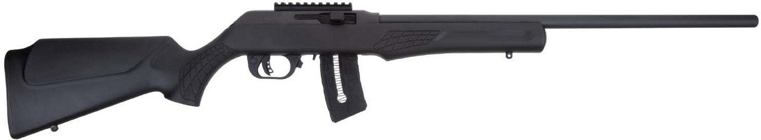Crafted with small-game and target shooting the Rossi RS22 22WMR Semi Auto Rimfire Rifle boasts a 21-inch barrel with a matte finish and is complemented with cross-bolt and trigger safety. This semi-auto action firearm features a tack driver, a scope base and a factory-installed Picatinny rail for optics mounting.