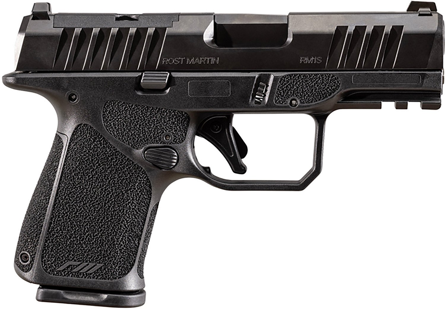 The Rost Martin RM1S 9mm Pistol has a 3.6-inch match-grade stee barrel and a capacity of 10+1-rounds. This subcompact double-action handgun is optics-ready with a Picatinny rail on a polymer frame and a serrated steel slide so you can use your favorite scope. Also featured are interchangeable backstrap grips for a secure grasp in the field, a flat-face trigger and a crowned muzzle. Additionally, a white dot sight in the front and a black serrated sight in the rear make it easy to see your target with the Rost Martin RM1S 9mm Pistol.
