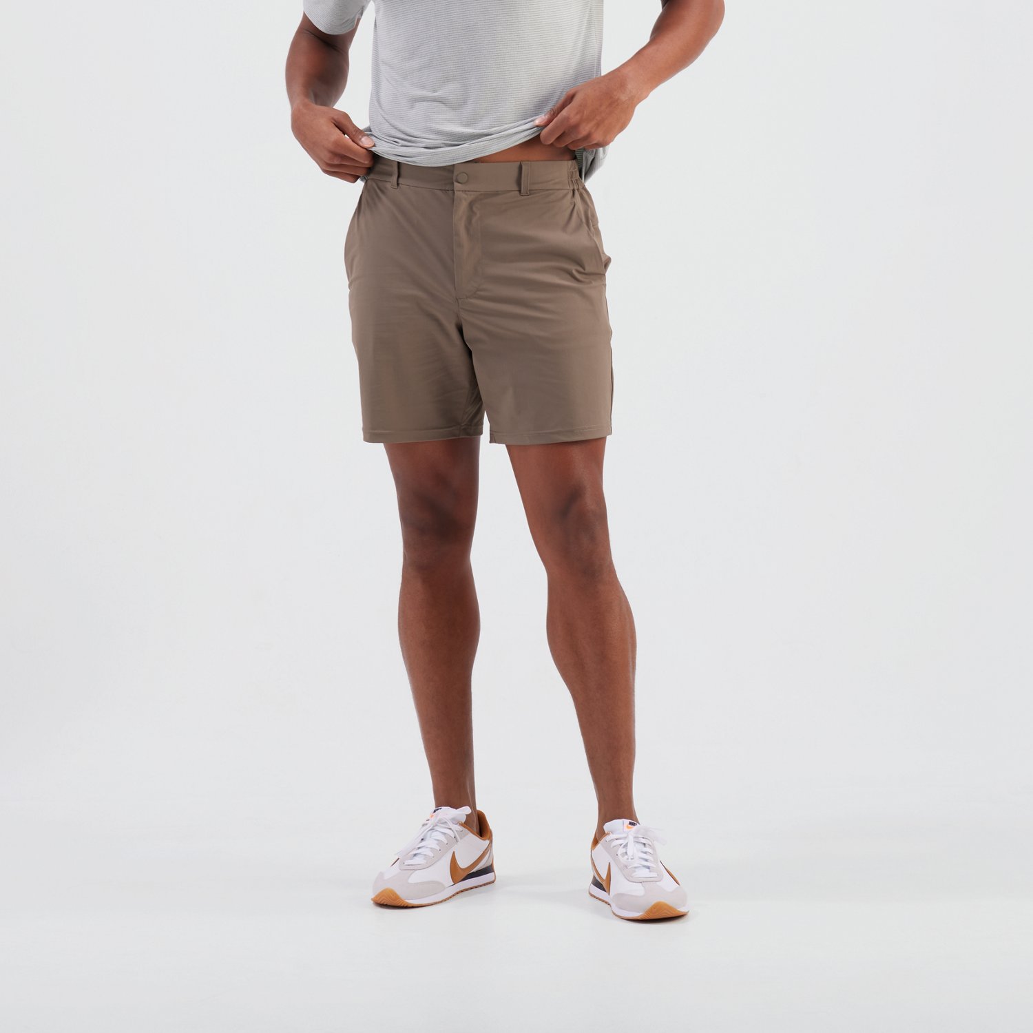 Look and feel your best in these ROW Men’s Commuter Shorts 7 in. They’re made from a blend of nylon and spandex for durability and comfort, and the elastic waistband offers a snug, secure fit.