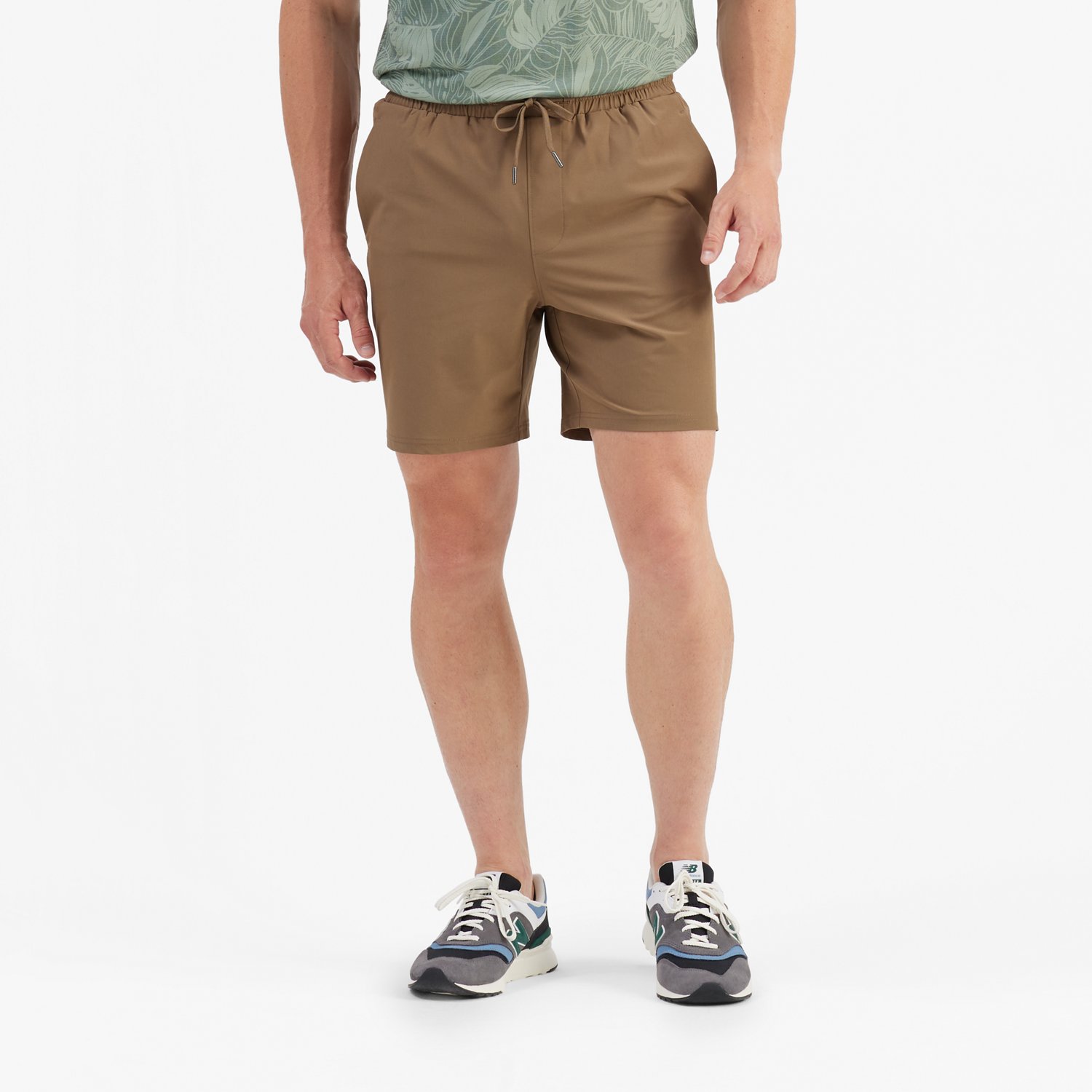 Look your best in the R.O.W. Men's Arise Shorts 7 in. They are made of 92% recycled polyester and 8% spandex. The invisible zipper pocket is at the left side seam, and their concealed reverse coil zipper pocket is at the back. The relaxed fit finishes off the design.