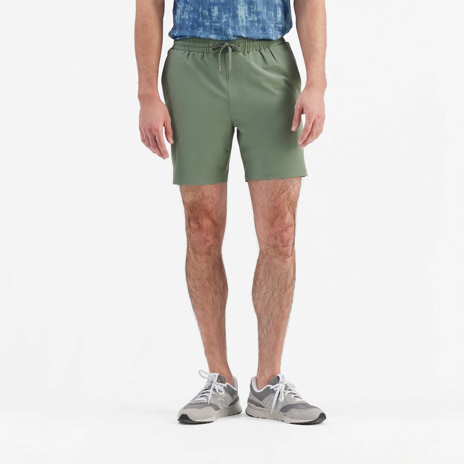 Look your best in the R.O.W. Men's Arise Shorts 7 in. They are made of 92% recycled polyester and 8% spandex. The invisible zipper pocket is at the left side seam, and their concealed reverse coil zipper pocket is at the back. The relaxed fit finishes off the design.