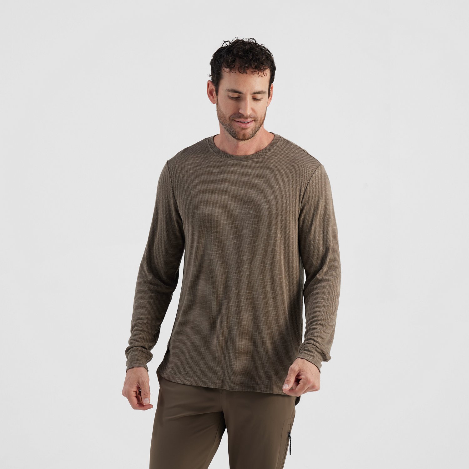 R.O.W. Men's Ashton Long Sleeve T-shirt offers a comfortable and stylish addition to your lifestyle apparel. This is crafted from a durable blend of 70% rayon and 30% recycled polyester, providing a sleek and durable, and the high-low hemline is shaped and stylish.