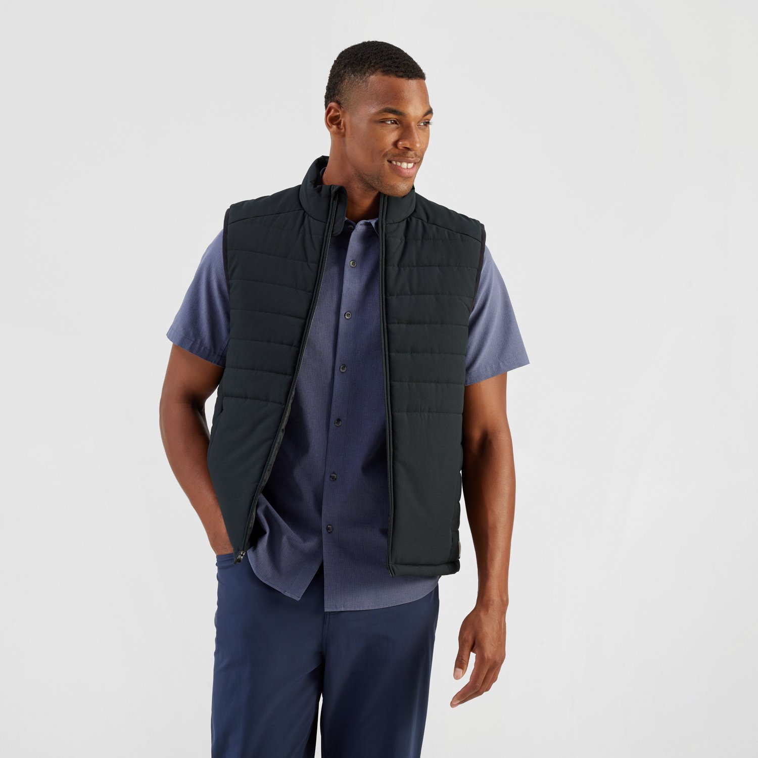 R.O.W. Men's Bowen Vest is a versatile men's vest crafted for comfort and everyday wear. This relaxed-fit outerwear features a full-zip design and a sleeveless cut, ideal for various lifestyle activities. Made from a blend of 90% recycled polyester and 10% spandex, it offers a comfortable stretch for adult men.