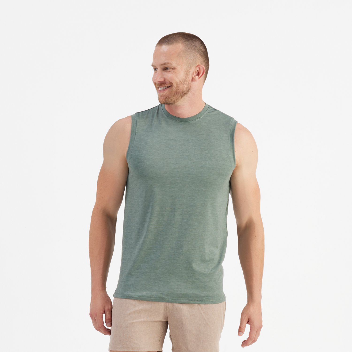 R.O.W. Men's David Tank Top is a versatile men's tank top designed for both lifestyle and training activities. Crafted from a comfortable polyester blend, this athletic shirt features a classic crew neck and a sleeveless design. Side vents enhance breathability, making it ideal for your workout sessions or everyday wear. This adult men's tank is easy to care for with machine washing.