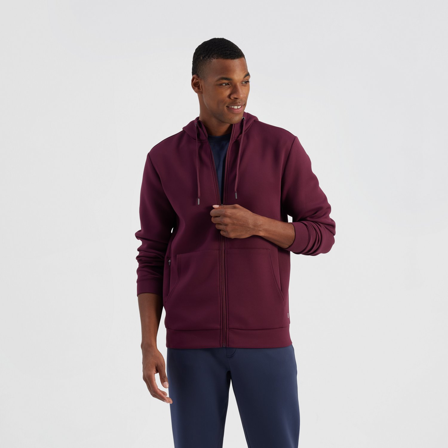 Made of pleasant-feeling sueded scuba fabric, this R.O.W. Men's Matias Hoodie wears comfortably all day long when the weather gets chilly. Front kangaroo pockets and an on-seam invisible zippered pocket provide ample space for stashing small items to take with you on the go.