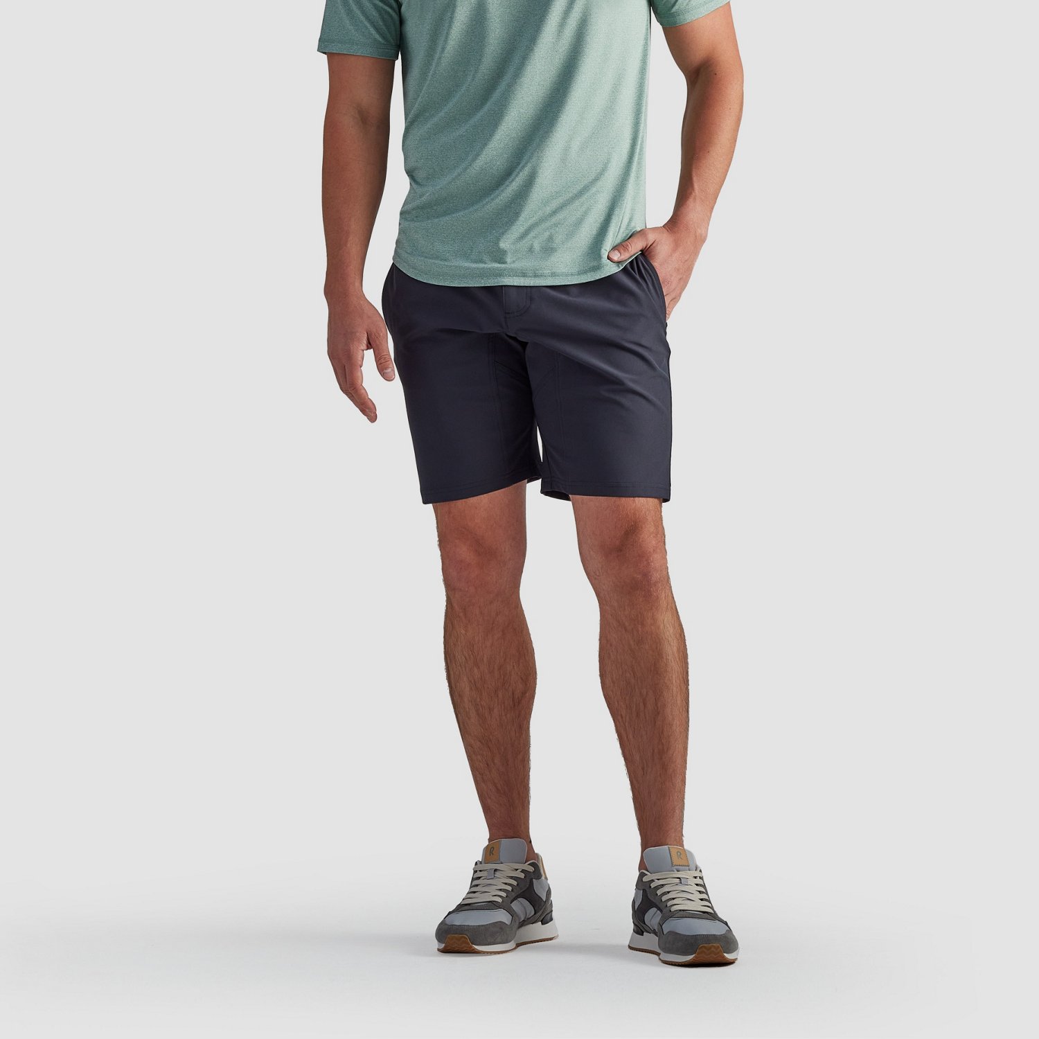 Keep it casual with the R.O.W. Men's Max Woven Shorts 8 in. The polyester and spandex material provides a comfortable feel, while the front button and functional fly offer a secure fit.