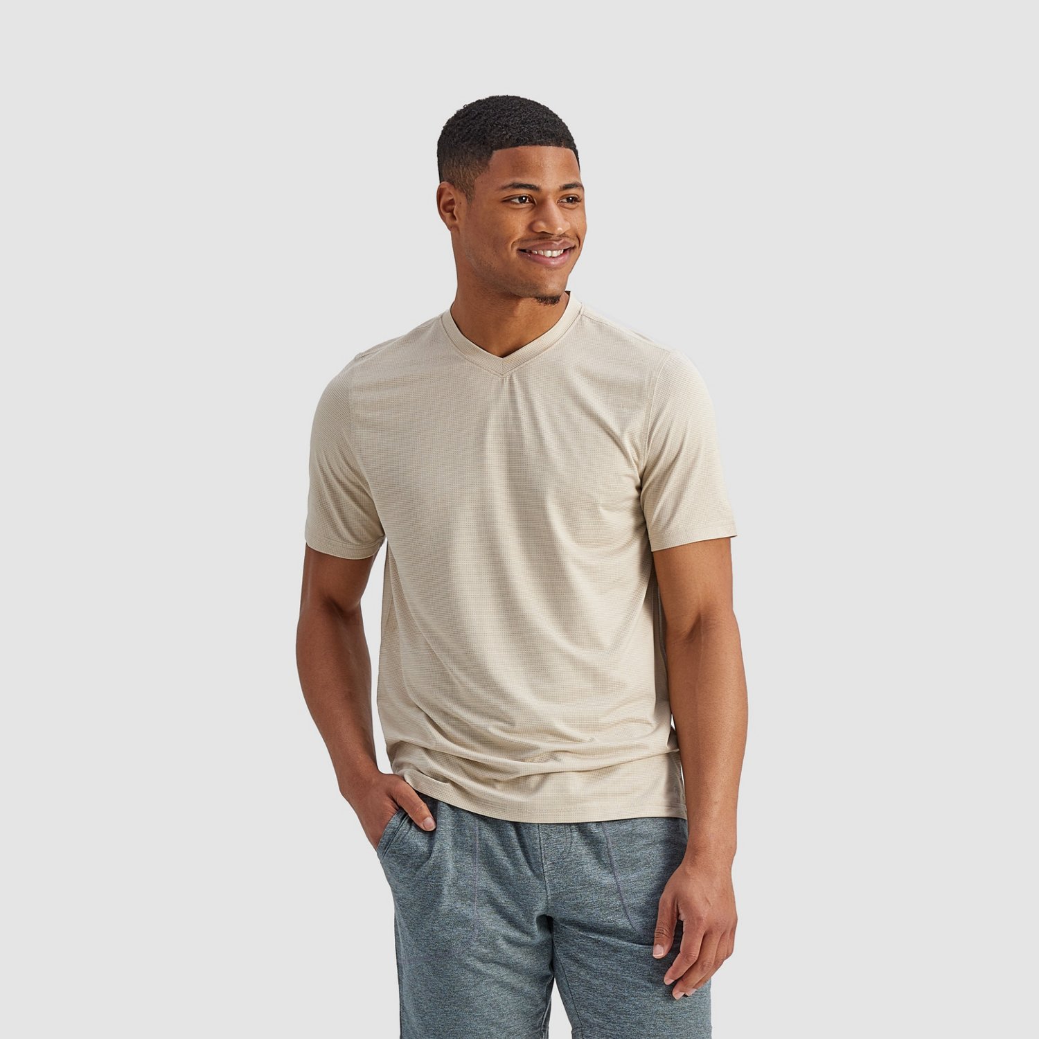 Head out in casual comfort in the R.O.W. Men's Oliver V-Neck T-shirt. This T-shirt is made from polyester and spandex fabric for all-day comfort and has side vents at hem for breathability.