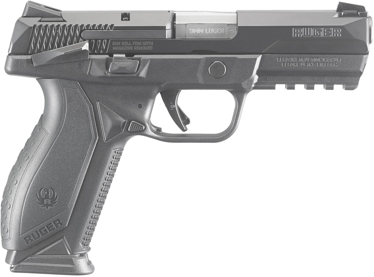 Featuring Novak® LoMount Carry 3-dot sights and a Picatinny rail, the Ruger American9mm Full-Size 10-Round Pistol also has a wraparound grip system and is tested for sustained +P ammunition use. Safety features include an integrated trigger safety, a visual inspection port and an internal automatic sear block system.