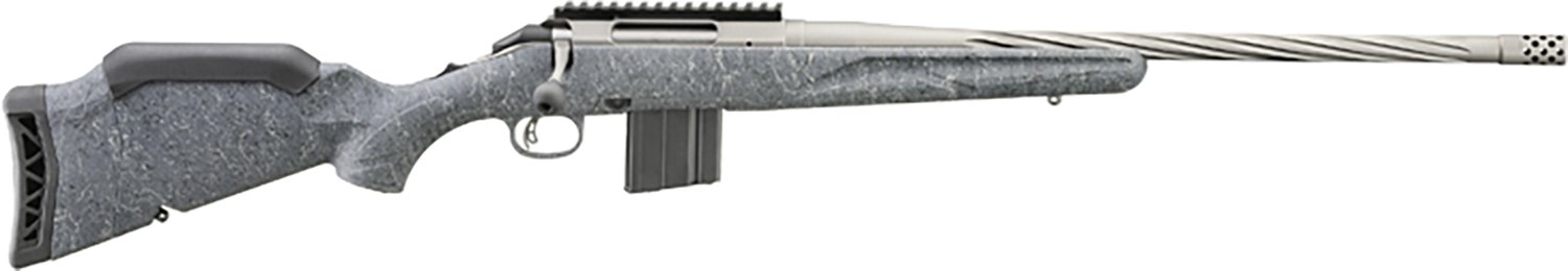 The Ruger American Gen2 .22 ARC Bolt Action Rifle is bolt action and has a 10-round capacity. It's built with a deep spiral fluted threaded barrel, gray splatter Gen II synthetic stock and a 3-position tang safety. Steel sling swivel studs, oversized bolt handle and a Picatinny scope base complete the design.