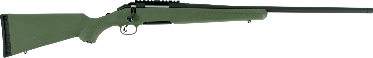 The Ruger American Predator Moss .308 Winchester Bolt-Action Rifle offers a blend of performance and practicality for hunting enthusiasts. Its 18-inch cold hammer-forged barrel features a 5/8-inch-28 thread pattern for added versatility, while the lightweight synthetic stock with grip serrations provides comfortable handling. The Ruger® Marksman Adjustable™ trigger allows a pull weight adjustment between 3 and 5 pounds, paired with a top tang safety for controlled operation. Equipped with a Power Bedding® integral bedding block system and a 1-piece aluminum scope rail, this rifle is designed for stability and consistent shot placement. The 1-piece, 3-lug bolt with a 70-degree throw and flush-fitting rotary magazine add convenience. Weighing 6.62 pounds with a 48-inch length, this rifle combines portability and power, making it an excellent choice for field use.