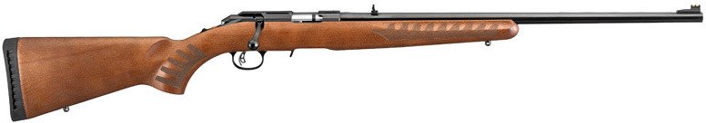 Designed to accept most 10/22® magazines, the Ruger American Rimfire Wood Stock .22 LR Bolt-Action Rifle is crafted with a 22-inch free-floating barrel with a target crown muzzle and a steel-alloy receiver with a rimfire scope base. The wood stock has a checkered grip and a rubber butt pad, and the rifle comes with a detachable, flush-mounted 10/22® BX-1 10-round rotary magazine.