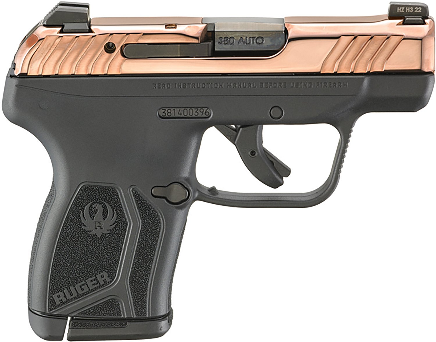 Arm yourself with the Ruger LCP MAX .380 ACP Pistol. It is single action with a 10-round capacity. The alloy steel barrel with a black oxide finish is 2.8-inches long, and it is equipped with an alloy steel slide with a rose gold PVD finish. The black, glass-filled nylon grip finishes off the design.