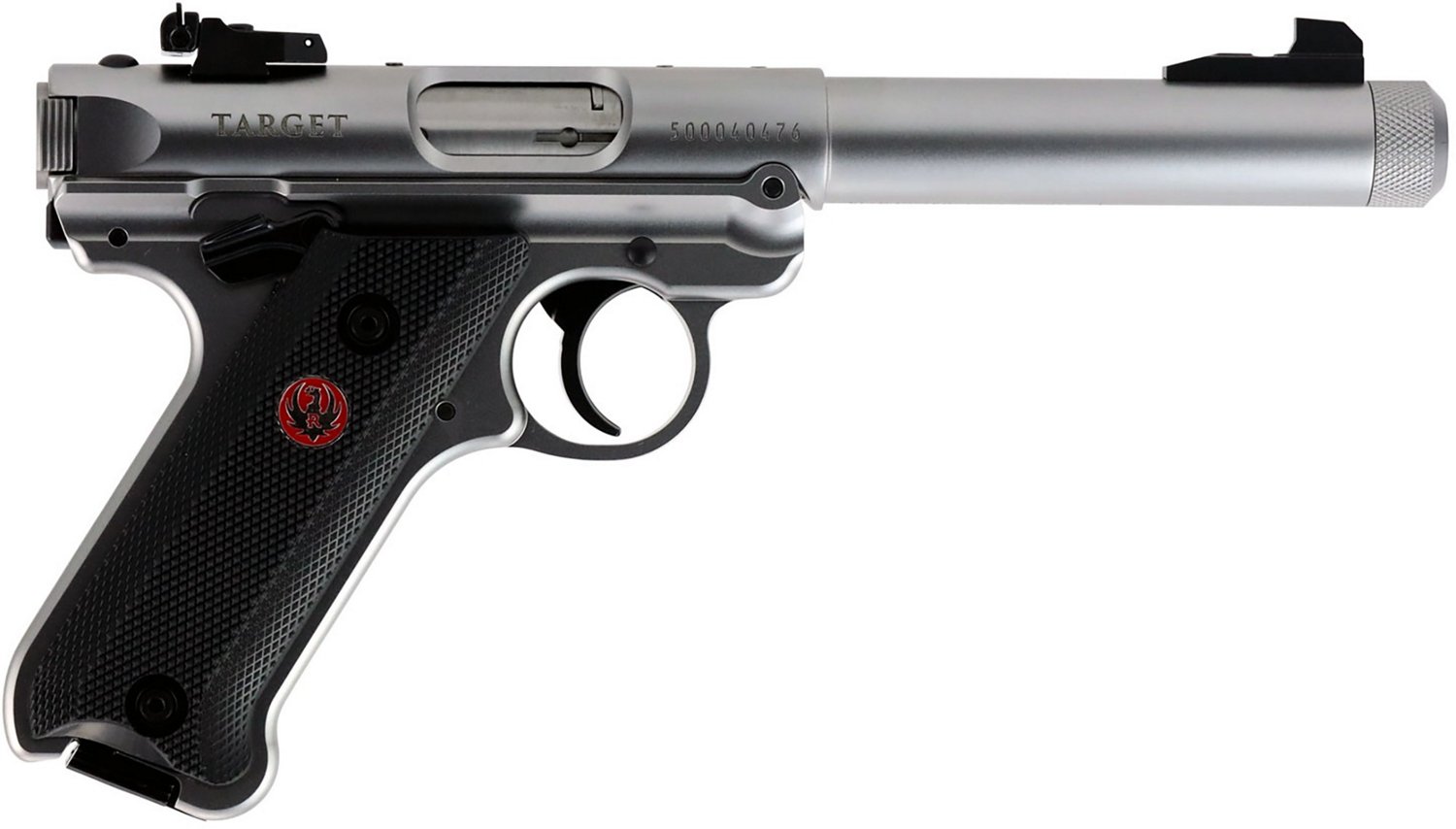 Defend what's yours with the Ruger Mark IV Target .22 LR Pistol. The cold hammer-forged barrel provides ultra-precise rifling for increased accuracy and longevity, while the smooth contoured grip includes a natural pointing grip angle and replaceable grip panel for a nonslip hold. The internal cylindrical bolt construction ensures permanent sight-to-barrel alignment for additional accuracy, and the contoured ejection port and easy-to-grasp bolt ears allow for durable and reliable operation.