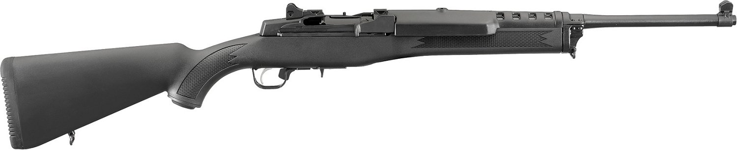 Great for medium-size game, the Ruger Mini-14 Ranch 5.56 NATO/.223 Remington Semiautomatic Rifle has an 18.5-inch stainless-steel barrel and a stainless-steel receiver that's drilled and tapped for simple rail mounting. It boasts a nonglare blade front sight, an adjustable ghost ring rear sight and a self-cleaning, moving gas cylinder. Includes 2 magazines and scope rings.