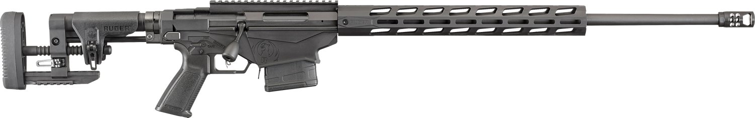 The Ruger Precision .308 Win. Bolt-Action Rifle is designed with a Ruger Precision MSR stock and a threaded barrel with a matte finish. The bolt-action rifle features a reversible, AR-style, selector safety, a 10-round magazine capacity and a 15-inch, free-float M-LOK handguard.
