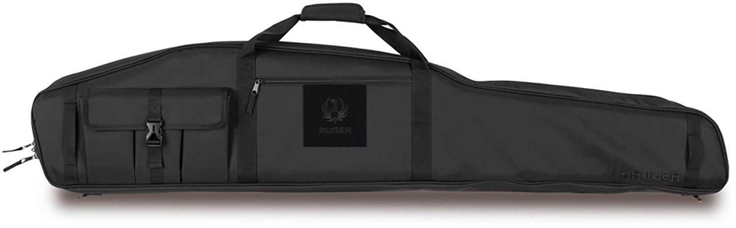 Carry your rifle with the Ruger Precision Soft Rifle Case. The polyester construction affords durability, while the heavy-duty foam padding provides increased protection. The large divided flap pocket and central zippered pocket help organize your gear, and the detachable shoulder strap allows for comfortable carrying.
