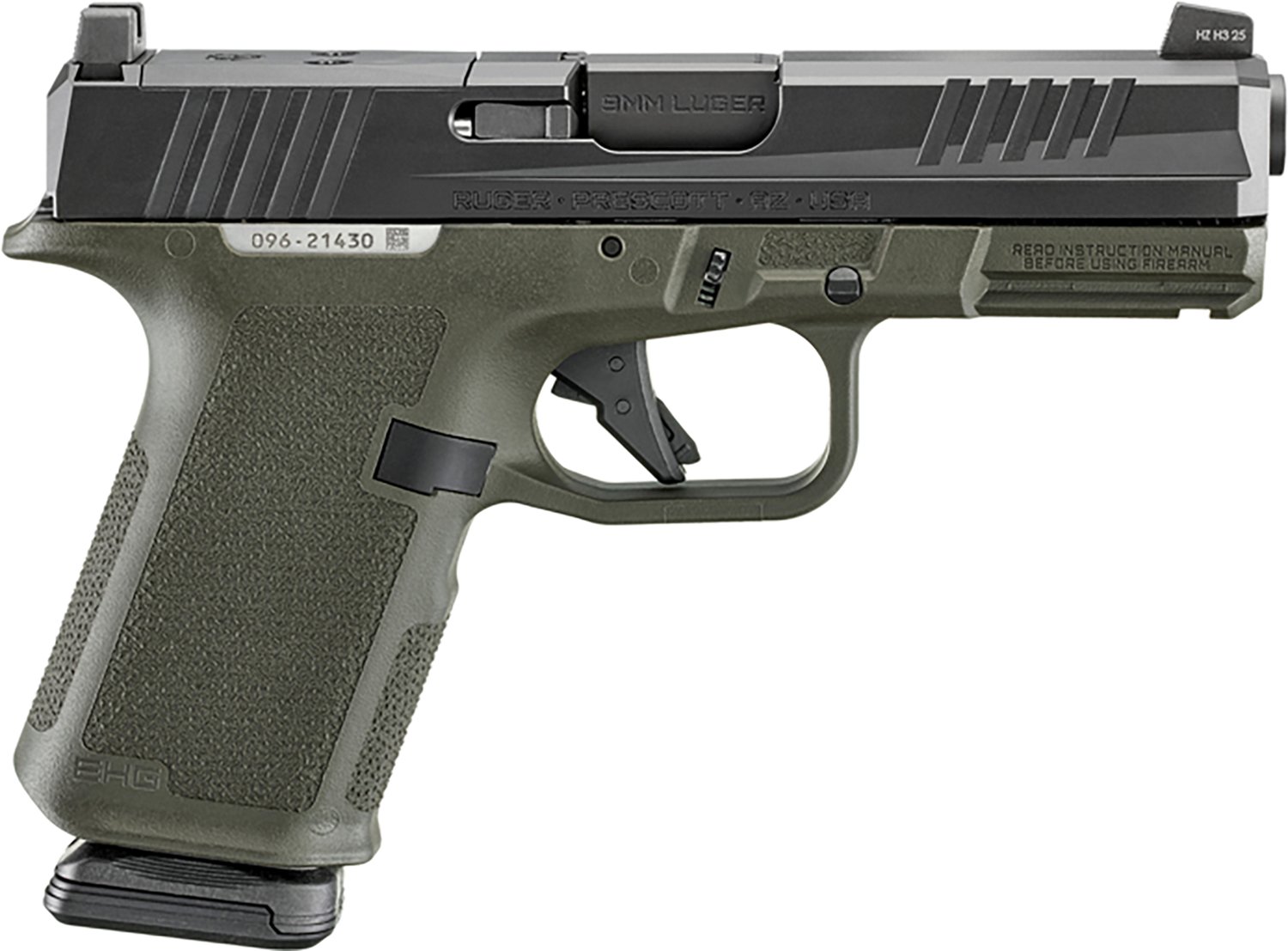 The Ruger RXM OR 9mm Pistol boasts striker fired action and has a 15+1-round capacity. It's built with a precision rifled alloy steel barrel, through-hardened alloy steel slide and a Magpul Enhanced Handgun 3/4-scale TSP textured grip. Tritium co-witness height front and drift adjustable rear sights, integrated trigger safety, internal striker blocker and inspection port safeties and a universal-pattern accessory rail complete the design.