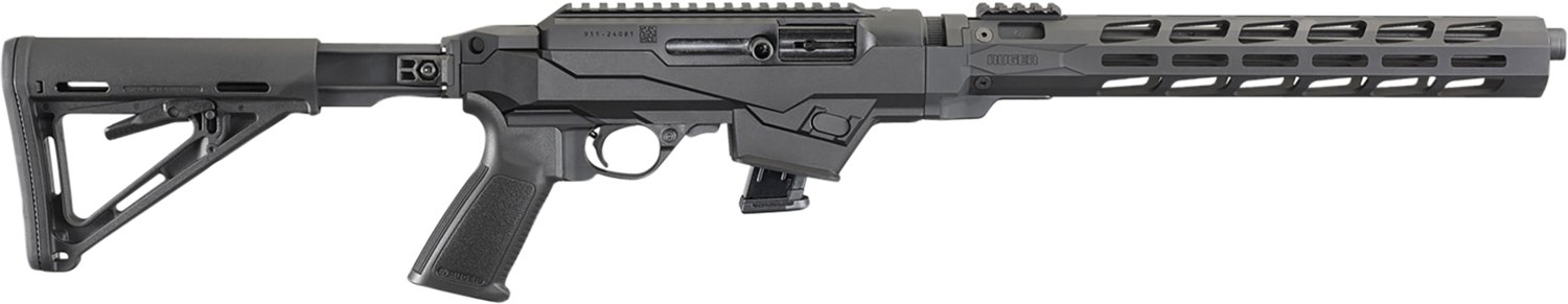 Arm yourself with the Ruger State Compliant PC Carbine 9mm Luger Semiautomatic Rifle. It is semiautomatic with a 10-round capacity. The rifle has a 16.12-inch fluted barrel and an aluminum receiver with a hard-coat anodized finish. Chassis synthetic stock.