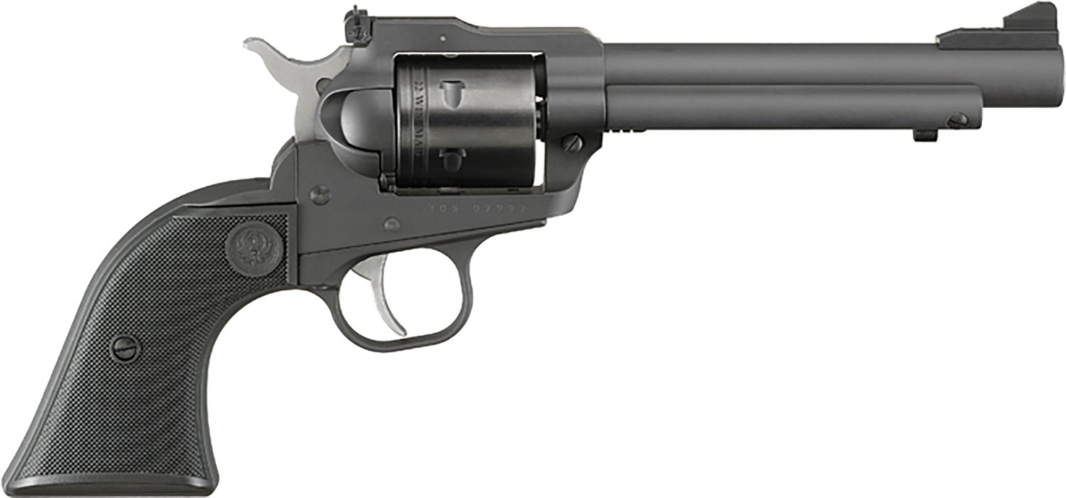 Arm yourself with the Ruger Super Wrangler 22LR Revolver. It's single action with a 6 round capacity. The hammer-forged barrel is 5.5 inches long, and the grip is synthetic. It has adjustable front and rear sights.