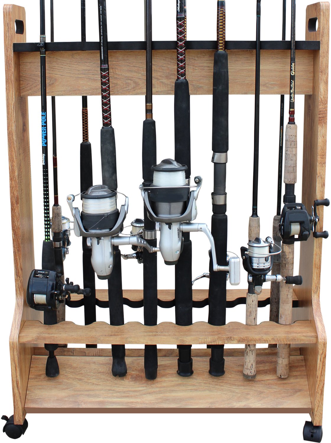 Double-sided design holds up to 16 rod and reel combos