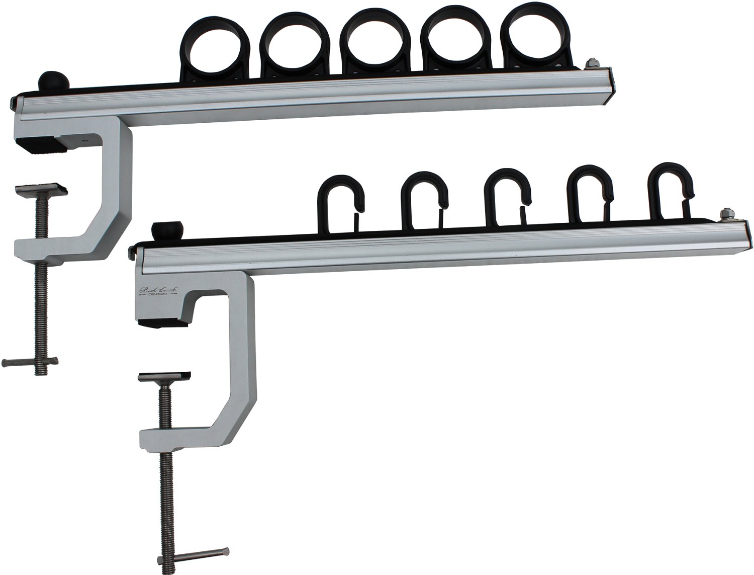 Secure your fishing rods while on the go with Rush Creek Go Anywhere 5-Rod Truck Bed Rack. This universal rack fits in most truck beds, and the rugged aluminum and ABS construction stands up to rough conditions. The bungee system locks rods reliably in place.