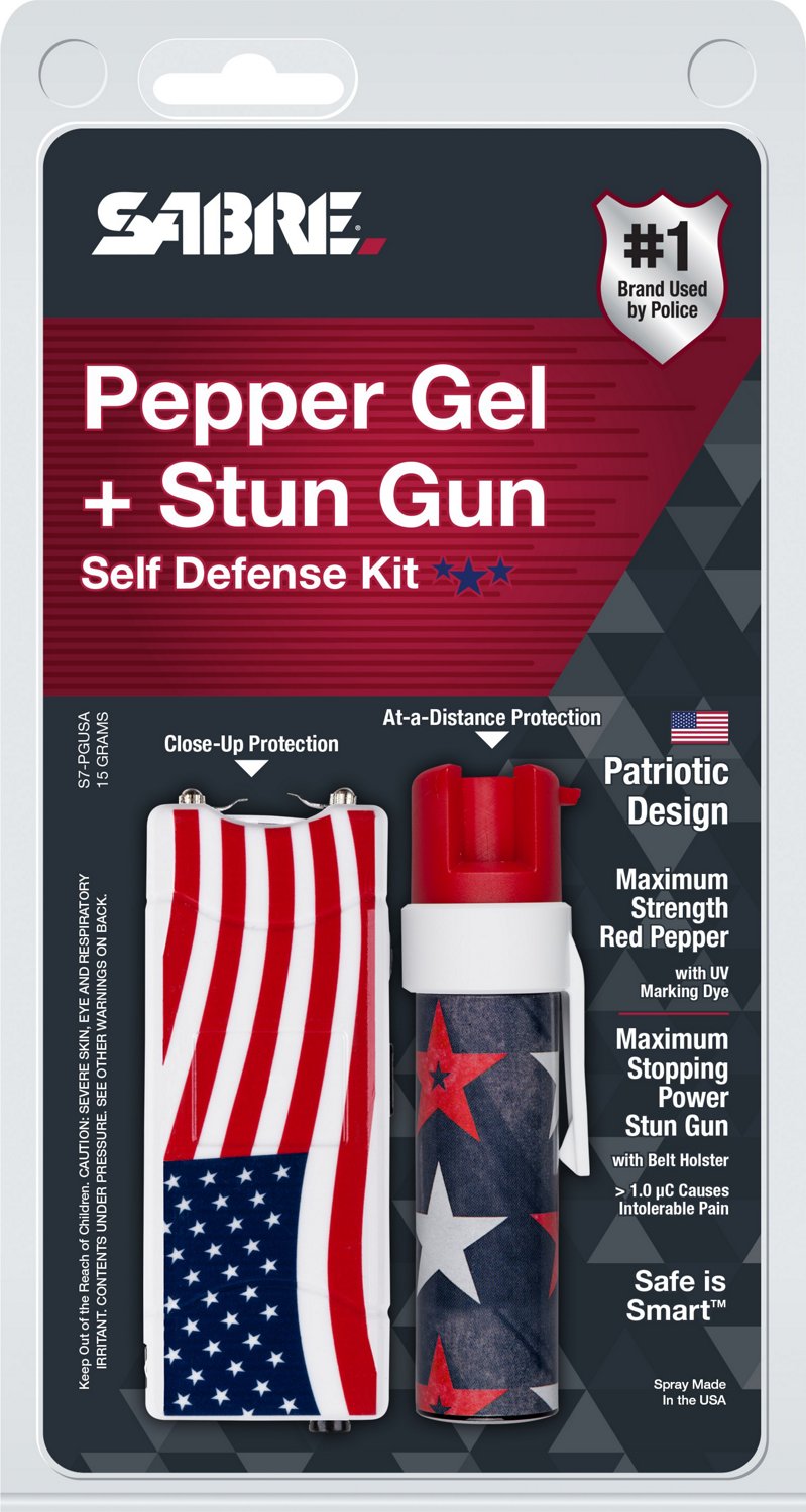 Protect yourself when you have the SABRE USA Stun Gun with LED Flashlight and Pepper Gel Pocket Unit with Clip. The 120-lumen flashlight on the stun gun can be used to deter a potential attacker, and the stun gun itself provides a powerful punch with its 2.76 microcoulomb charge. The gel pepper spray does not atomize, so it can hit the intended target directly, and a snap clip lets you bring it with you on the go.