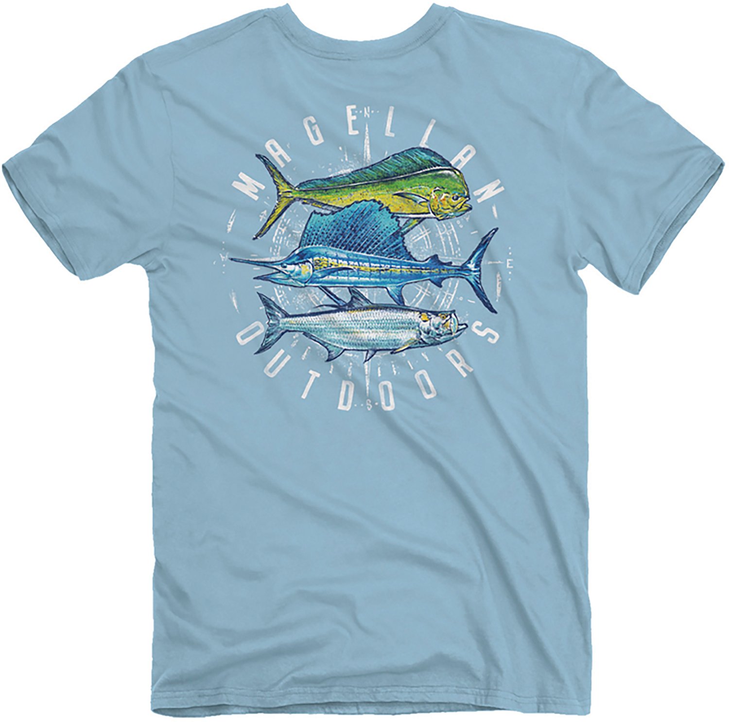 The Magellan Outdoors Boys' Salt Collage T-shirt is made of cotton and polyester and features a screen-printed graphic. Short sleeves. Machine wash cold.