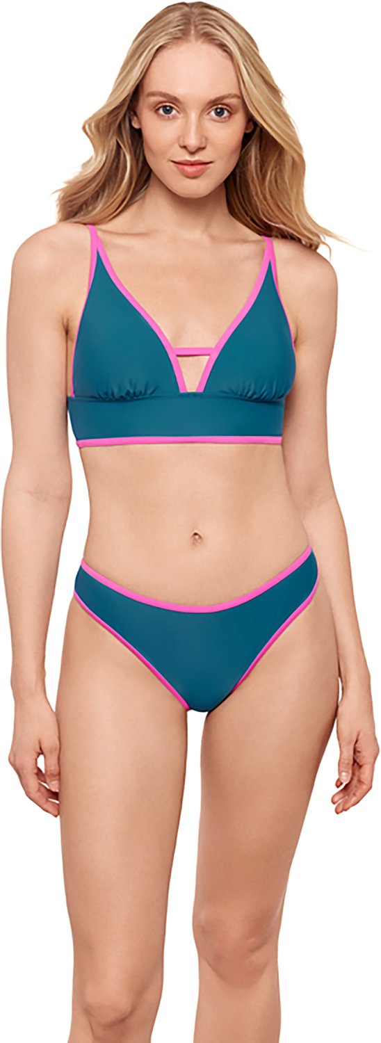 Customize your swim sets with this Salt + Cove Juniors' In a Bind Front Tab Midkini Swim Top. It is made of 82% nylon and 18% spandex for a comfortable and stretchy fit, and the bralette style provides a relaxed look and feel.