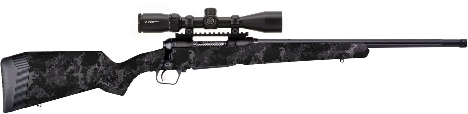 Take aim with the Savage 110 Apex Hunter .300 Winchester Magnum Bolt Action RIfle. The matte black carbon steel button-rifled barrel improves precision, while the Savage® AccuTrigger™ provides accuracy. The 3-9 x 40mm Vortex® Crossfire II scope is mounted and bore-sighted for immediate field use, and the Dead-Hold BDC reticle enables use at extended range.